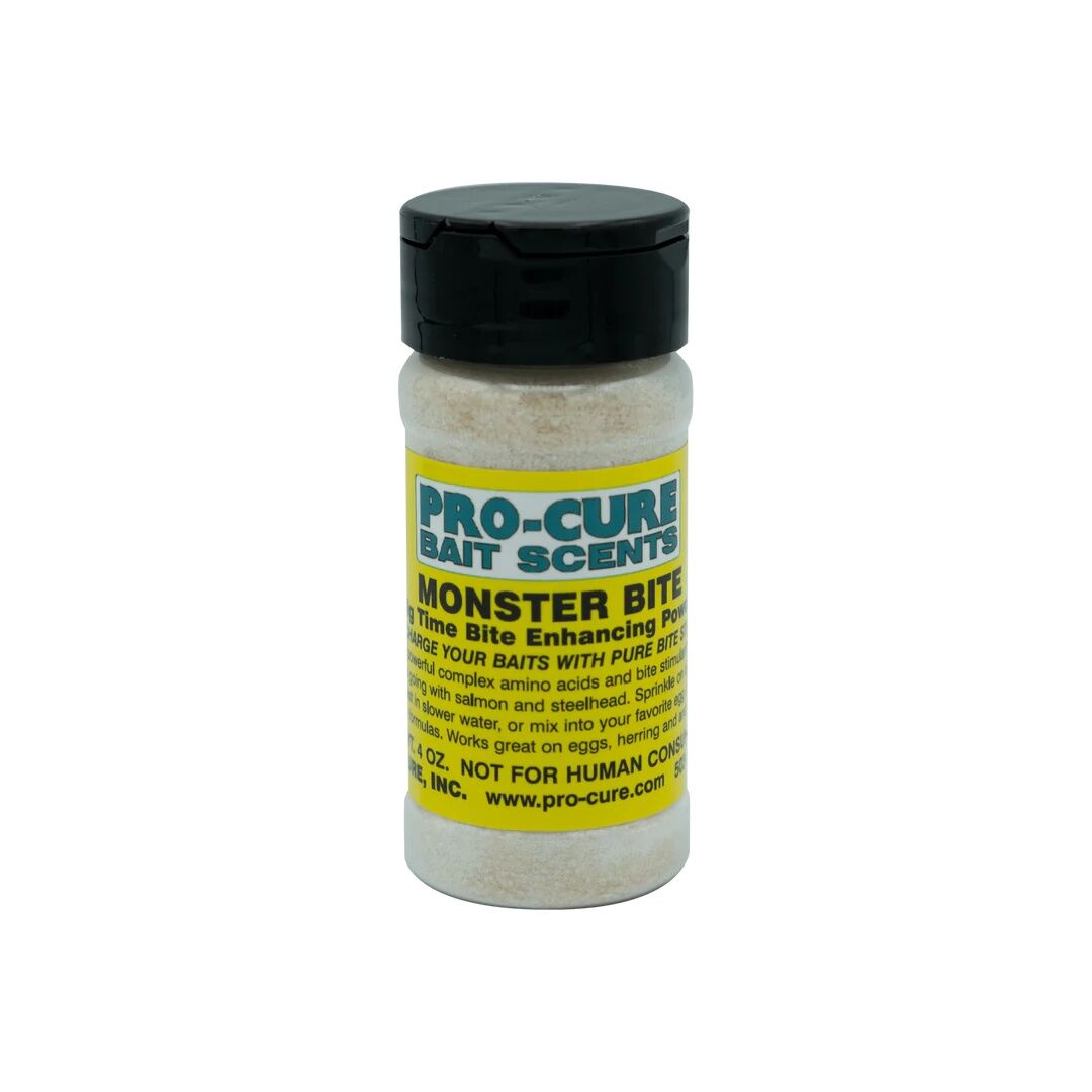 - In slower water (pools, tidewater) Monster Bite can be sprinkled onto cured eggs directly before casting.