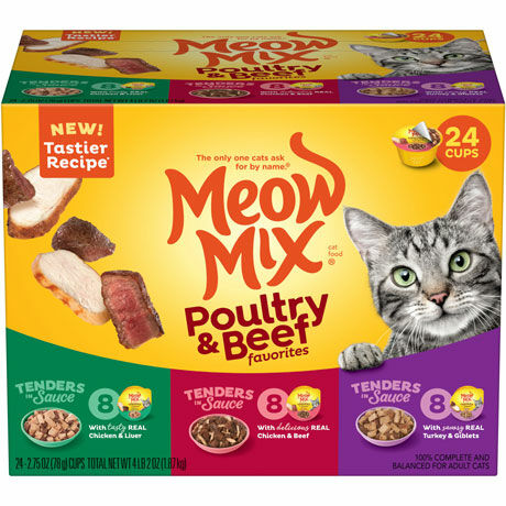 Meow Mix Tender Favorites - Real Chicken & Beef in Sauce, 24 Pack
