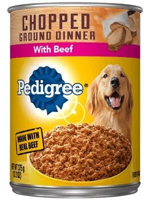 - PEDIGREE® Meaty Ground Dinner With Chopped Beef is formulated to meet the nutritional levels established by the AAFCO Dog Food Nutrient Profiles for maintenance.
