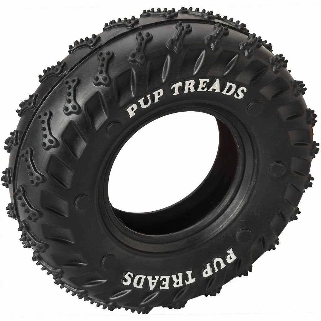- Durable rubber tire with raised nubby tread will be a favorite for your dog