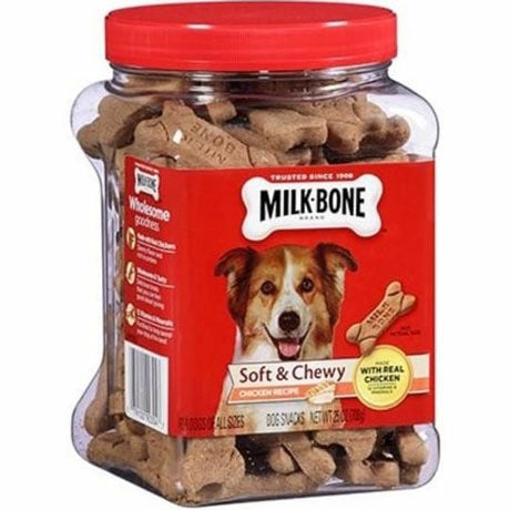 - Contains one (1) 25-ounce container of Milk-Bone Soft & Chewy Chicken Recipe With Chicken Breast dog treats