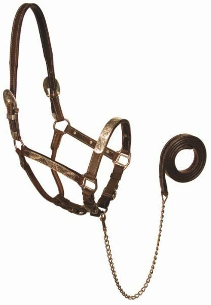 Buffalo Leather Show Halter W/Chain & Lead - Brown, 16 in X 11 in