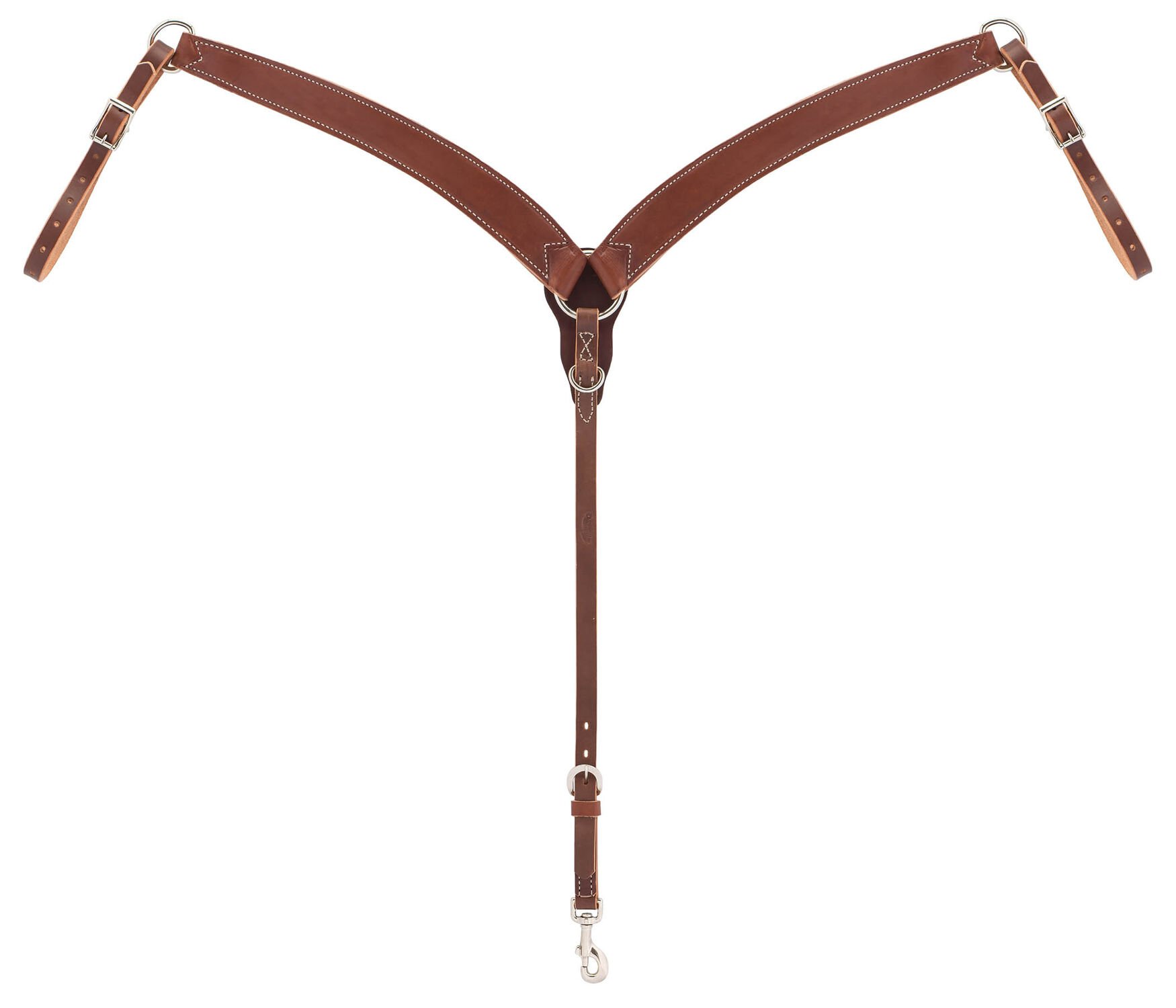 - This durable, weather-resistant harness leather breast collar features doubled and stitched breast pieces, a center ring with leather backer, an adjustable center strap and a tie down dee