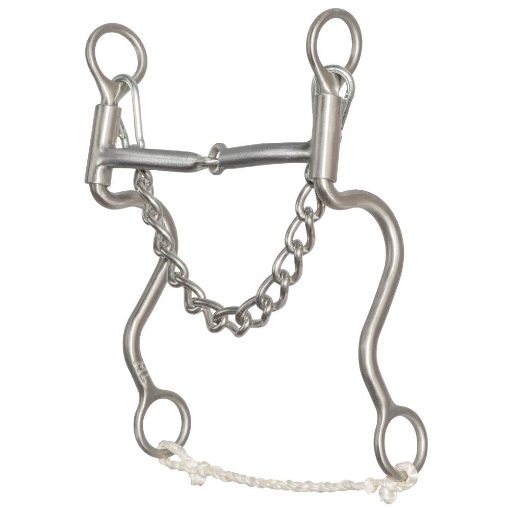 - 8” cheek with rope slobber bar and stainless steel curb chain