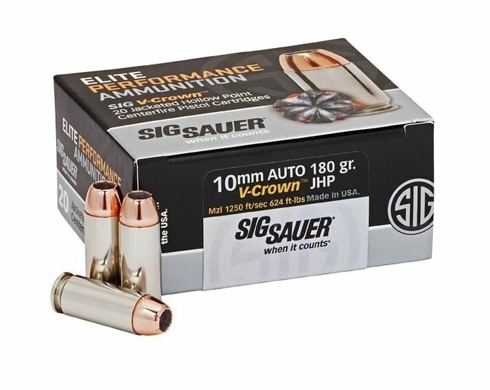 SIG Sauer 10mm Auto, 180 Grain, Elite V-Crown Jacketed Hollow Point Ammunition - 20 Rounds