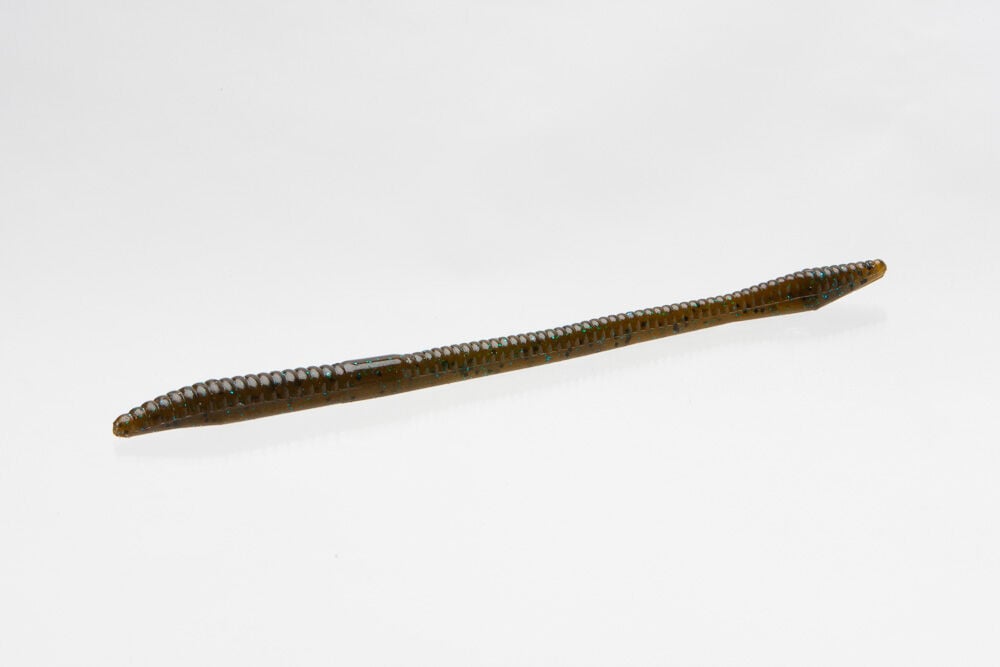 Zoom Bait Trick Worm Green Pumpkin Blue Stickbait, 6 1/2-In, 20-Pk