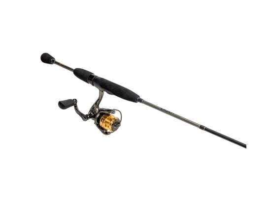 - The reel is secured to an IM6 graphite blank, providing the perfect combination of backbone and flexibility, with durable stainless steel guides and stainless steel inserts and low profile EVA spinning handles.
