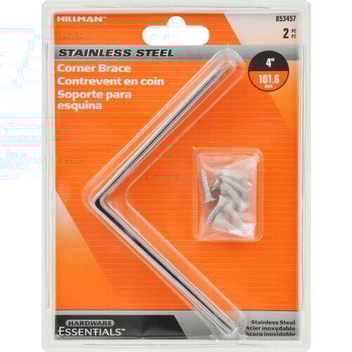 Hillman Hardware Essentials Stainless Steel 4 X 7/8-In Corner Brace, 2-Pk