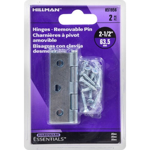 Hillman Hardware Essentials Zinc Plated Light Narrow Door Hinge With Removable Pin, 2 1/2-In, 2-Pk