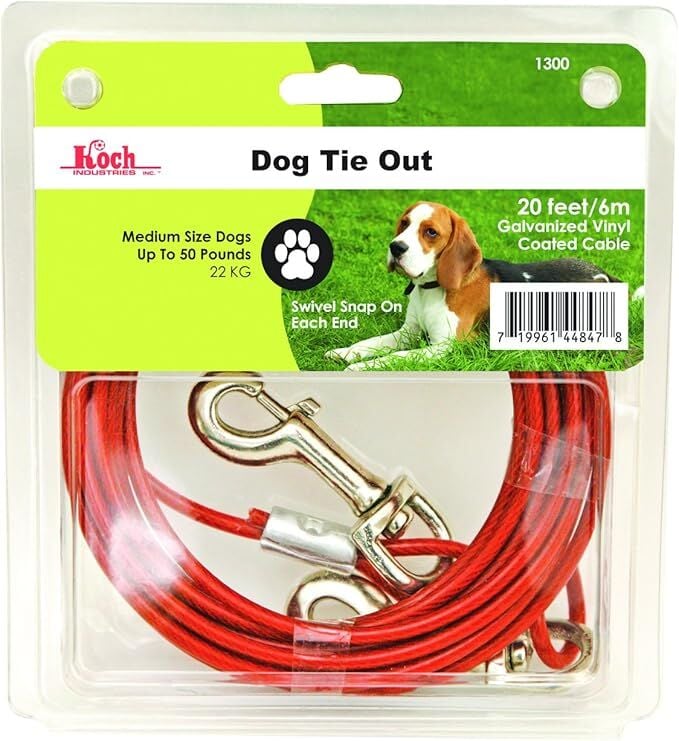 Koch Industries Dog Tie Out Cable With Snaps, 20-Ft