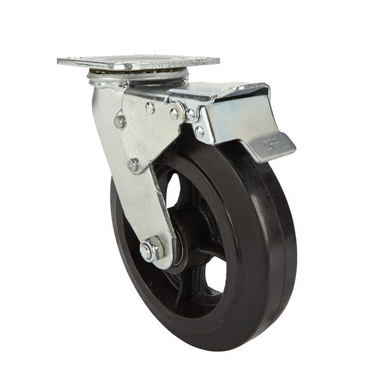 Precision Casters + Wheels 8-In Swivel Plate Rubber Caster with Brake