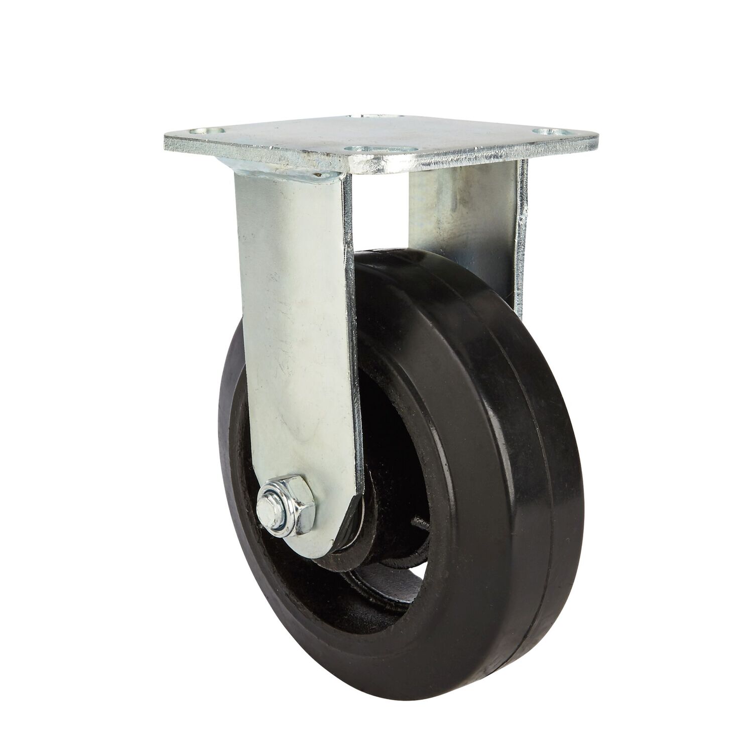 Precision Casters + Wheels Rigid Plate Rubber Caster, 8-In