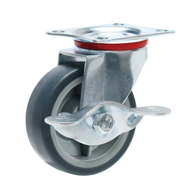 Precision Casters + Wheels 3-In Swivel Plate Non-Marking TPR Caster With Brake