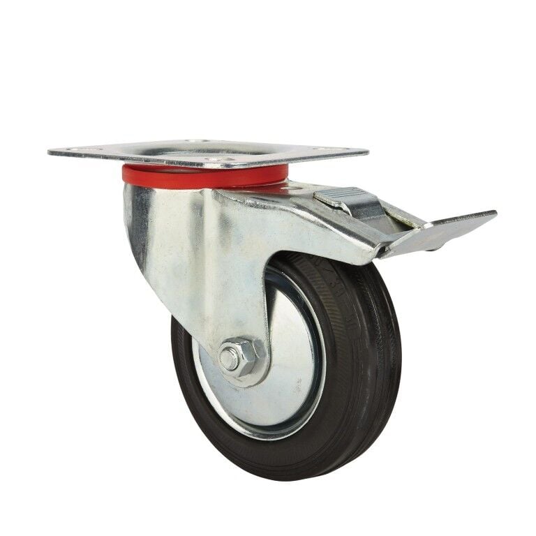 Precision Casters + Wheels 4-In Swivel Plate Rubber Caster with Brake