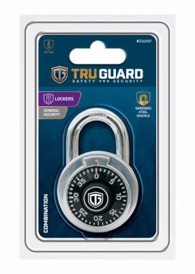 - TruGuard, 1-7/8", 48 mm wide, preset combination padlock with 3 digit black dial