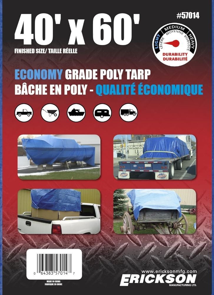 Erickson Economy Grade Blue Poly Tarp, 40-Ft x 60-Ft