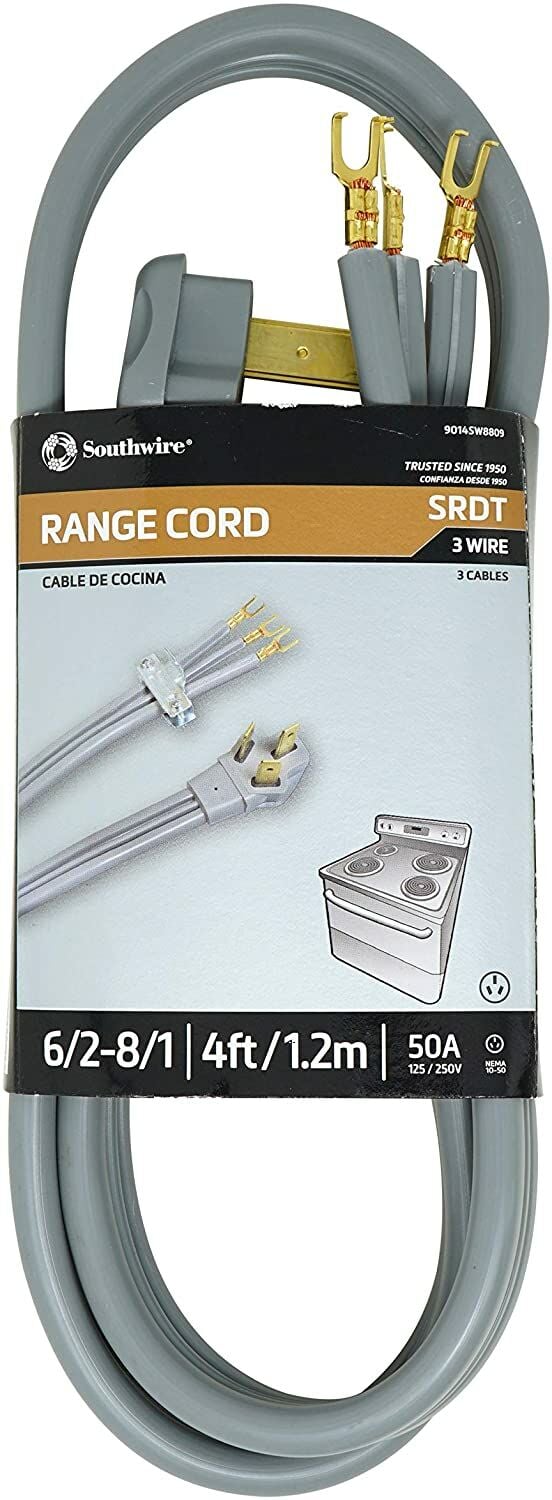 - RANGE POWER CORD 3 prong fits a standard 50A 3 conductor wall outlet