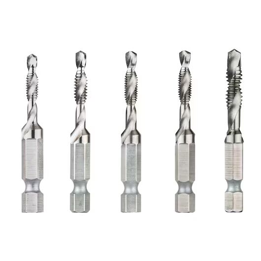 - Includes: (1) Drill Taps: (1) 8-32; (1) 10-24; (1) 10-32; (1) 12-24; (1) 1/4-20
