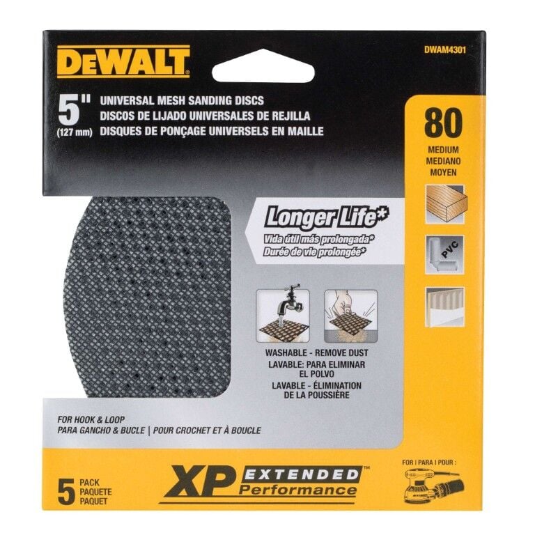 DEWALT Mesh Random Orbit Sand Paper, 80-Grit, 5-In, 5-Pk