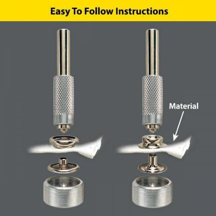 - ALL-IN-ONE:This easy-to-use snap fastener kit set includes a two-piece setting tool and six fastener sets