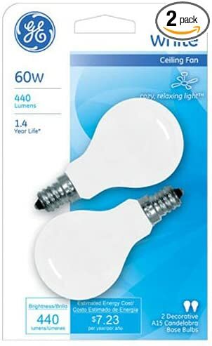 GE Ceiling Fan Light Bulbs (60 Watt), 440 Lumen, Candelabra Light Bulb Base, Soft White, 2-Pack