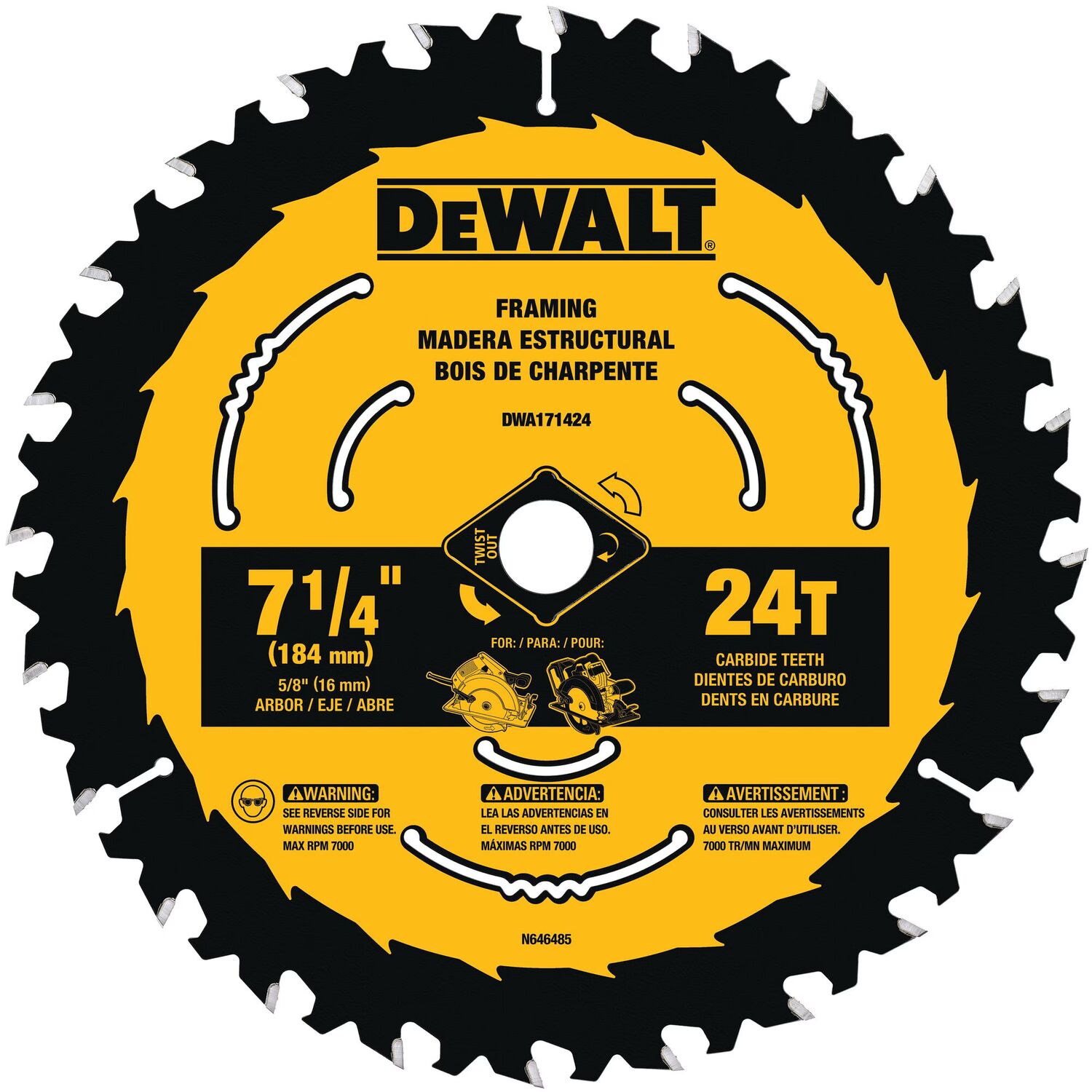 DEWALT Framing Circular Saw Blade, 24T, 7 1/4-In