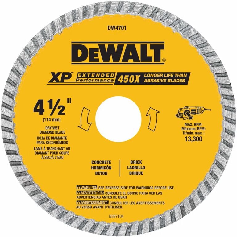 - Large diamond segments for optimal performance in concrete, brick, block, & tile