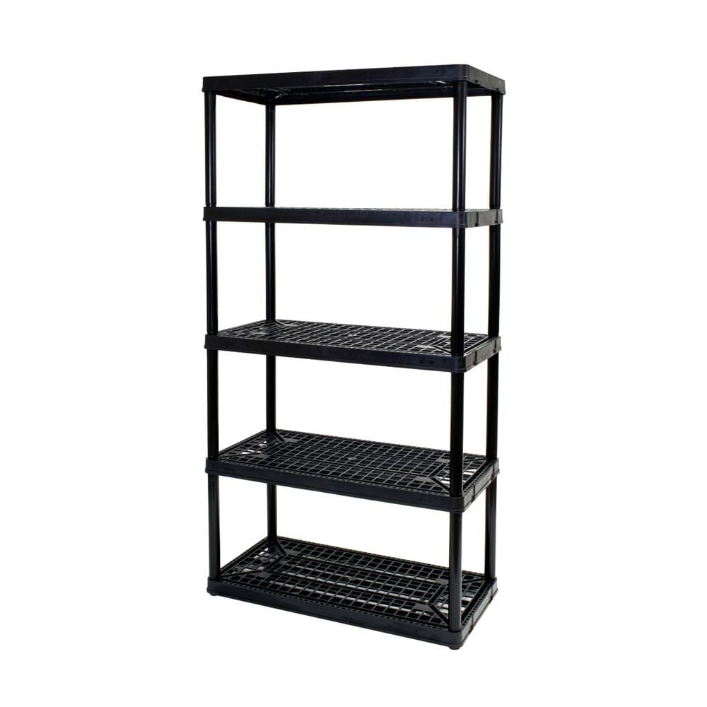 - Each shelf holds up to 150lb (68kg) evenly distributed (750lb (340.1kg) overall)