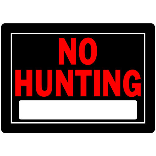- Eye-Catching Sign: Contrasting colors & bold block letters attract attention and ensure visitors and passersby know they may not hunt nearby