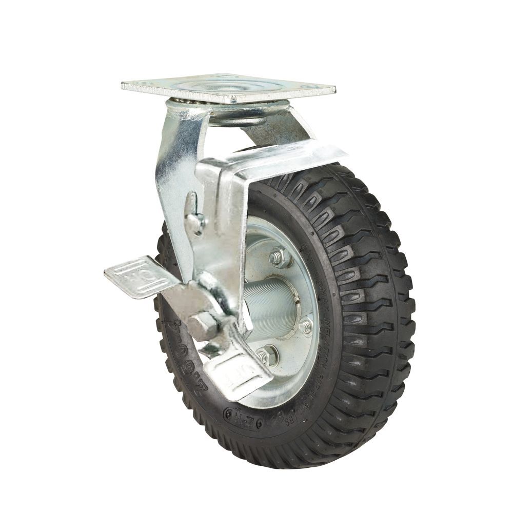Precision Casters + Wheels Swivel Pneumatic Caster with Brake, 8-In
