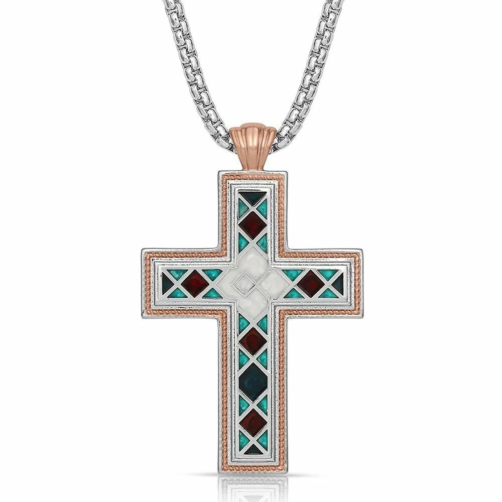 - Materials Rhodium and rose gold over a brass base. Synthetic turquoise. Mother of pearl. Red Agate. Lapis.
