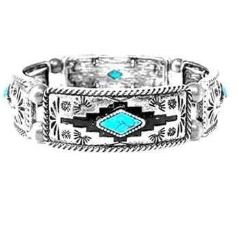 Wyo-Horse Navajo and Stone Stretch Bracelet Turquoise