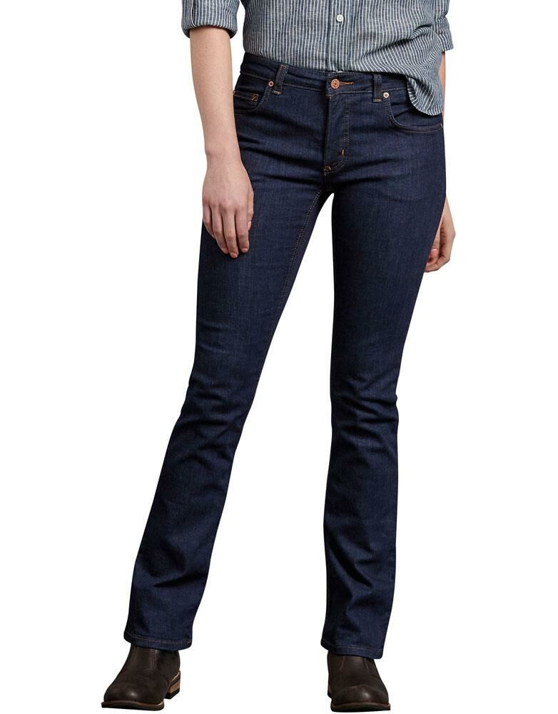 Dickies Women's Perfect Shape Bootcut Stretch Jeans in Rinsed Indigo Blue