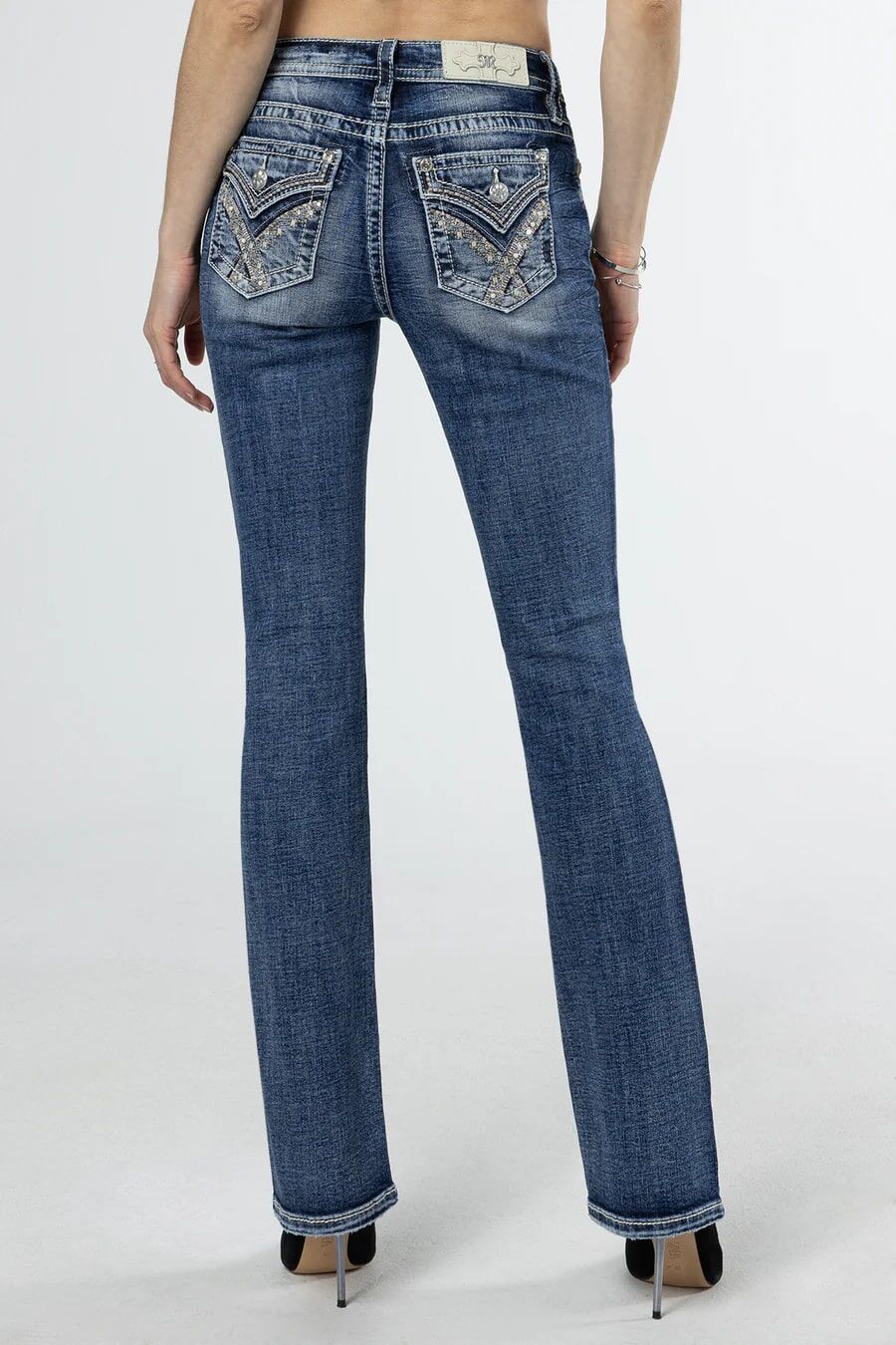 - Light pink, blue, white, and beige embroiders in a cross-stitch design with mini white iridescent and silver rhinestones