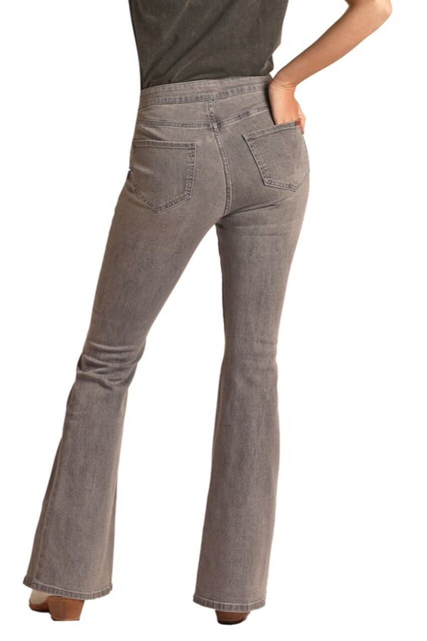 Rock & Roll Cowgirl Women's High Rise Extra Stretch Flare Jeans in Grey