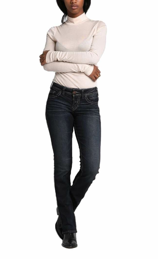 - Curvy-fit slim bootcut jeans with a dark indigo wash