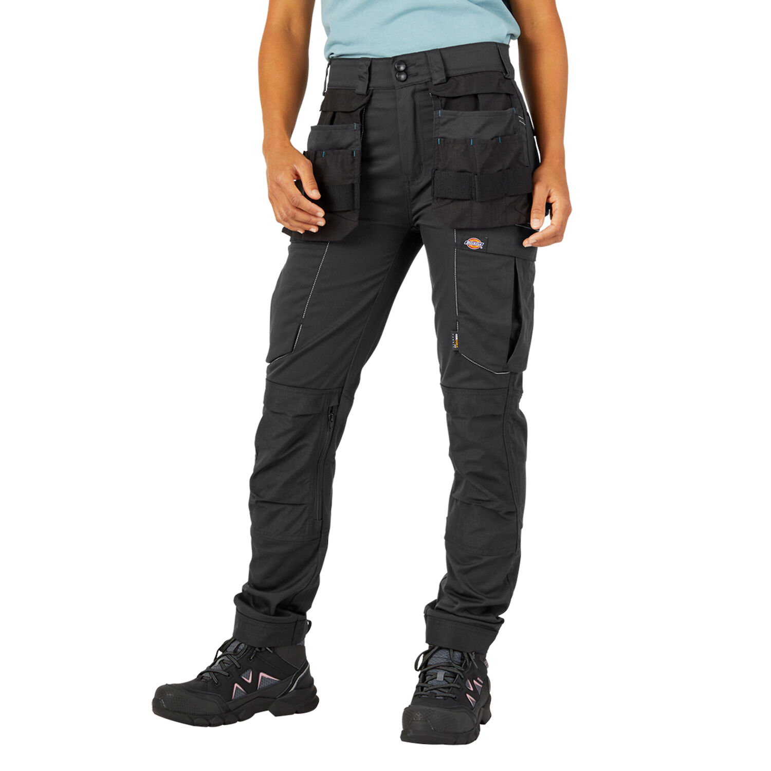 - Flex fabric lets you move easily and comfortably; Regular 32-inch length; Reinforced at knees and hems with Cordura; side loading pockets for knee pads with zip closures
