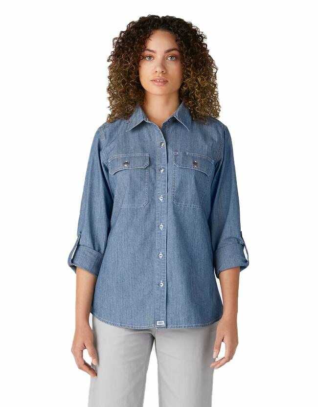 Dickies Women's Cotton And Polyester Long Sleeve Chambray Roll-Tab Work Shirt