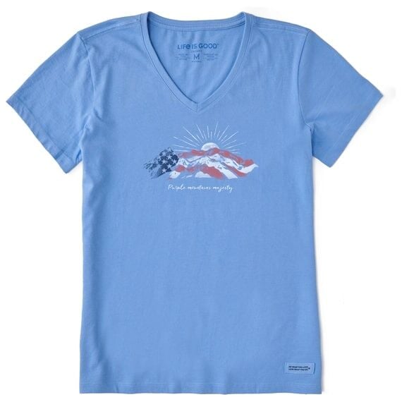 Life Is Good Women's Purple Mountain Majesty Crusher-LITE V-Neck T-Shirt in Cornflower Blue