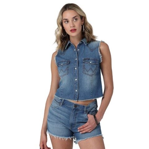 Wrangler Women's Retro Woven Shirt in Blue Denim
