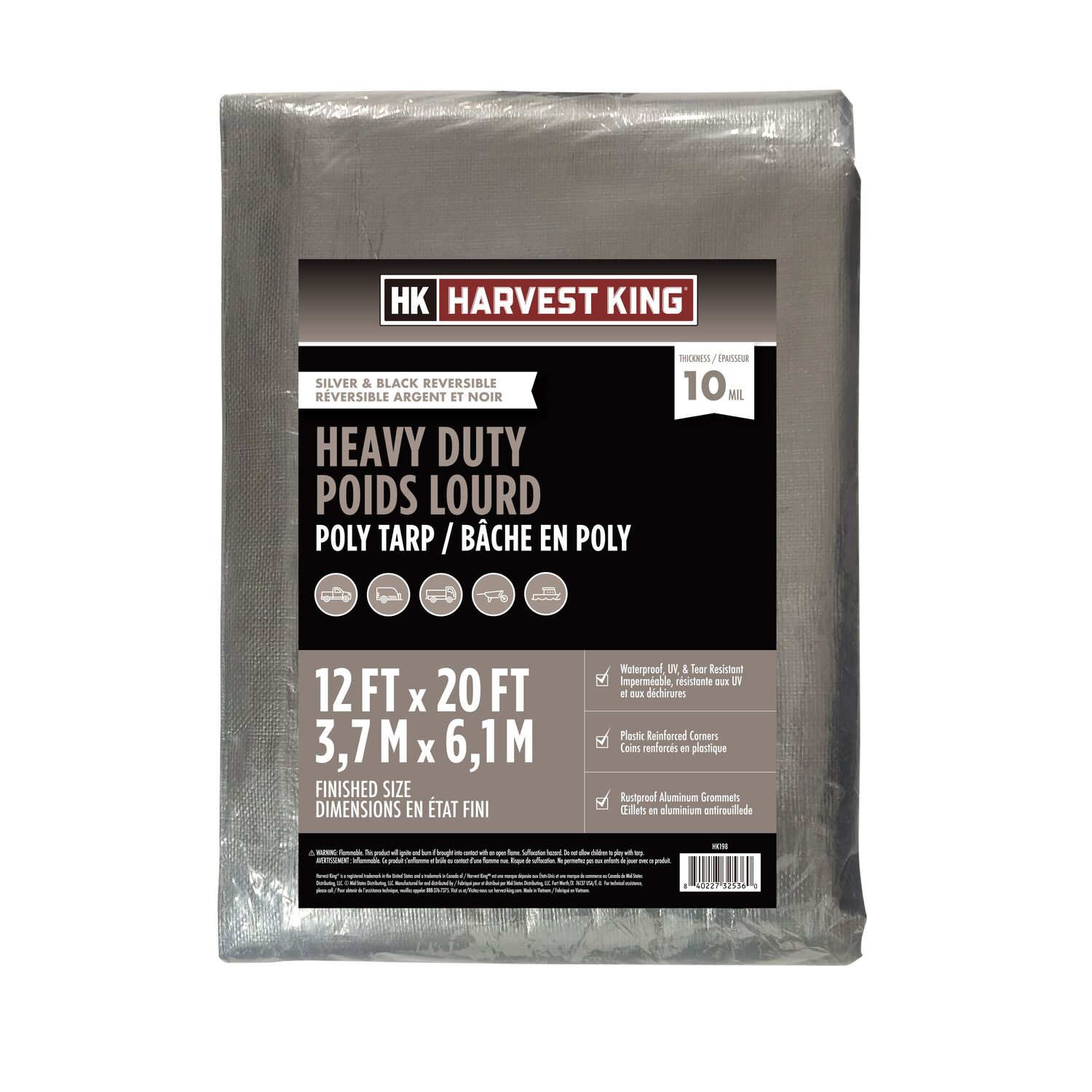 Harvest King Silver & Black Reversible Heavy Duty Poly Tarp, 12-Ft X 20-Ft
