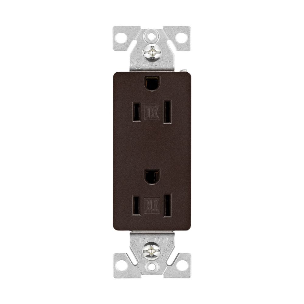 Eaton TR1107RB-SP-L Brown Residential Flush Decorator Duplex Receptacle, 15-A, 125-V