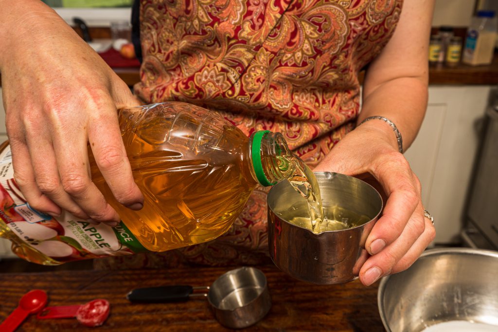 Add water and/or apple juice. Stir and cook on high heat until mixture thickens and begins to bubble. Add lemon juice and boil 1 minute, stirring occasionally.