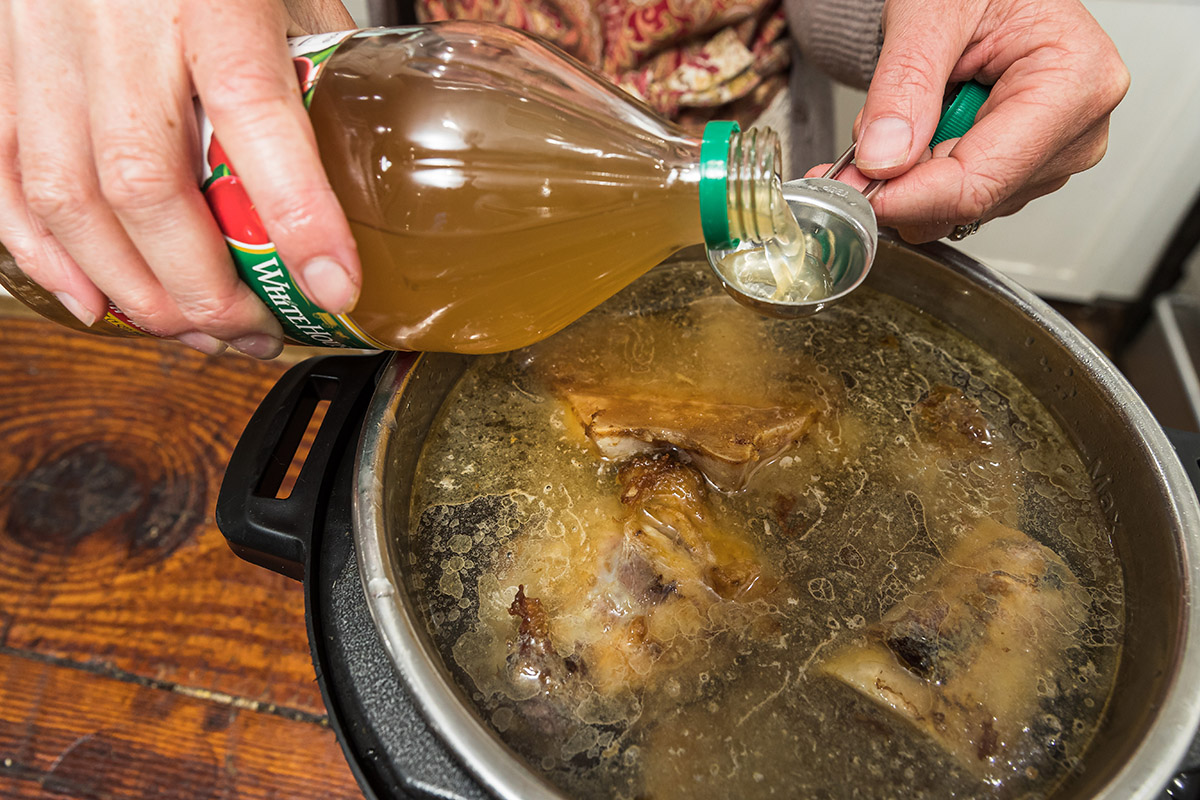 If you have some beef bones on hand, bake them at 375º F for 30 minutes. This will help pull the marrow out when you put them into the instant pot.