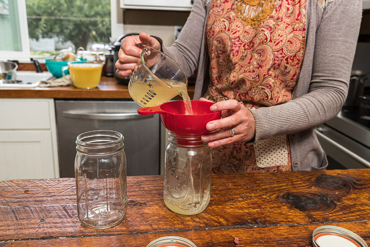 Step 1: Once you’ve created your broth using the methods we’ve outlined above, simply ladle your hot broth into hot, clean jars. Leave 1-inch of headspace.