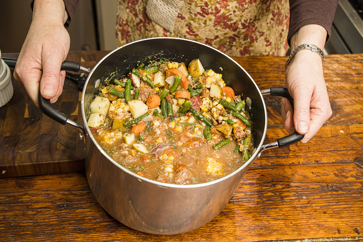 Every month in 2021, Greta is sharing another of her goodies, including recipes as well as crafts and more. This month, it’s her famous hearty garden stew made with everything she and her family grew, raised, harvested, and canned (or froze) the prior year.