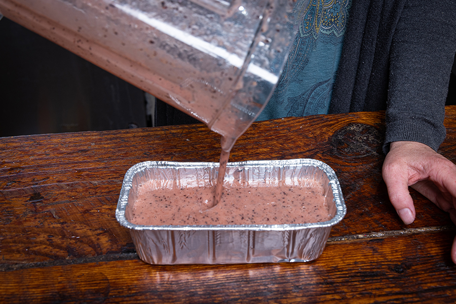 Pour your popsicle mixture into a small bread pan. Only fill it three-quarters of the way full.