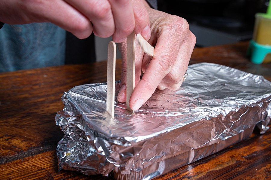 Add 2 sheets of tin foil to the top and cut 5 or 6 slits into the middle, from one end to the other.