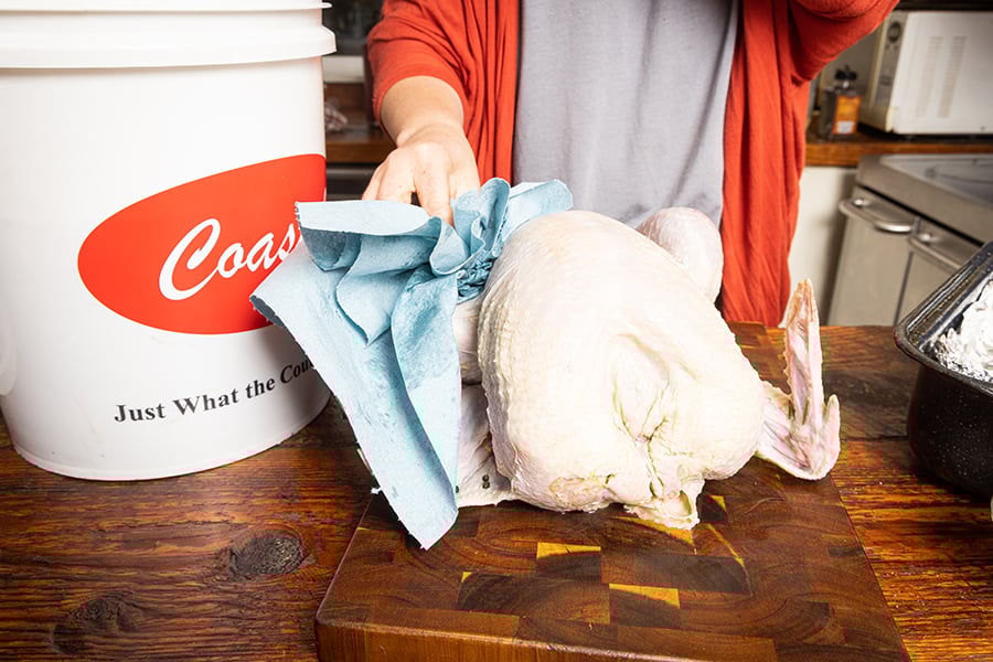 Cover the outside (and inside) of your turkey in the poultry dry rub.