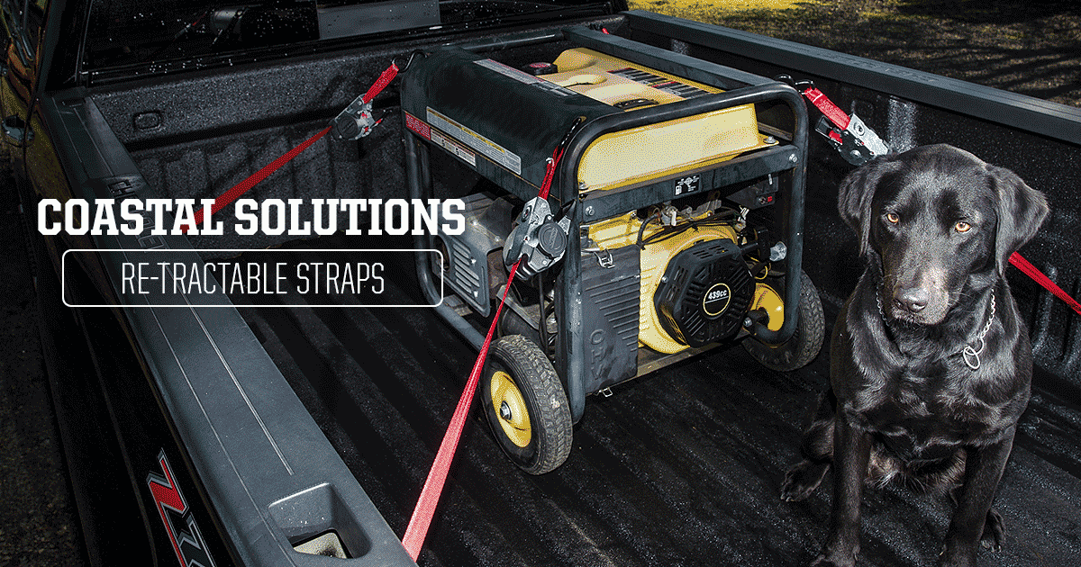 Coastal Tip: Ratchet straps are rated by the weight they can secure. Be sure your straps exceed the weight of whatever you are planning to haul.